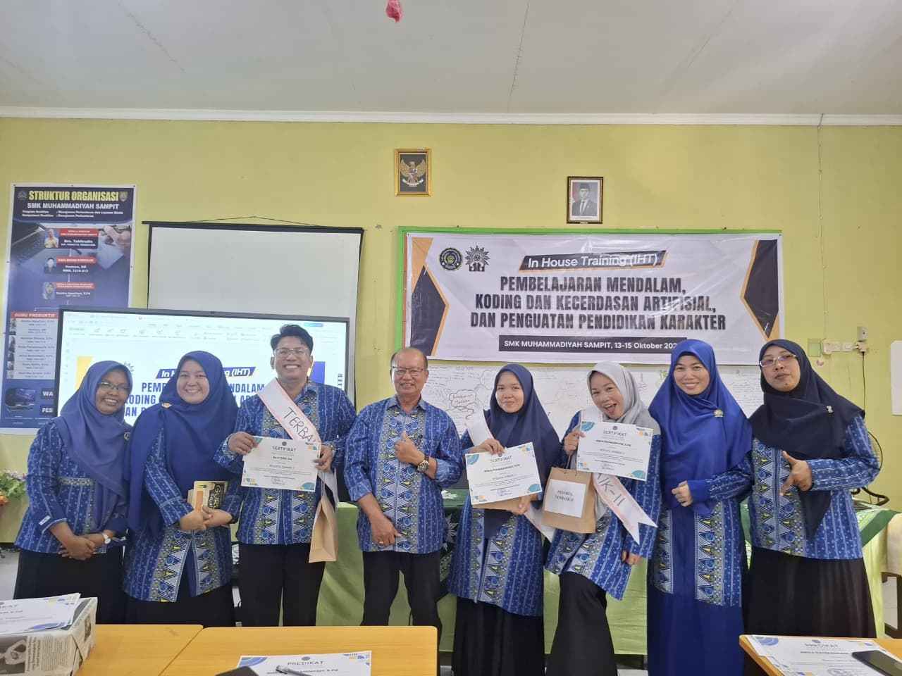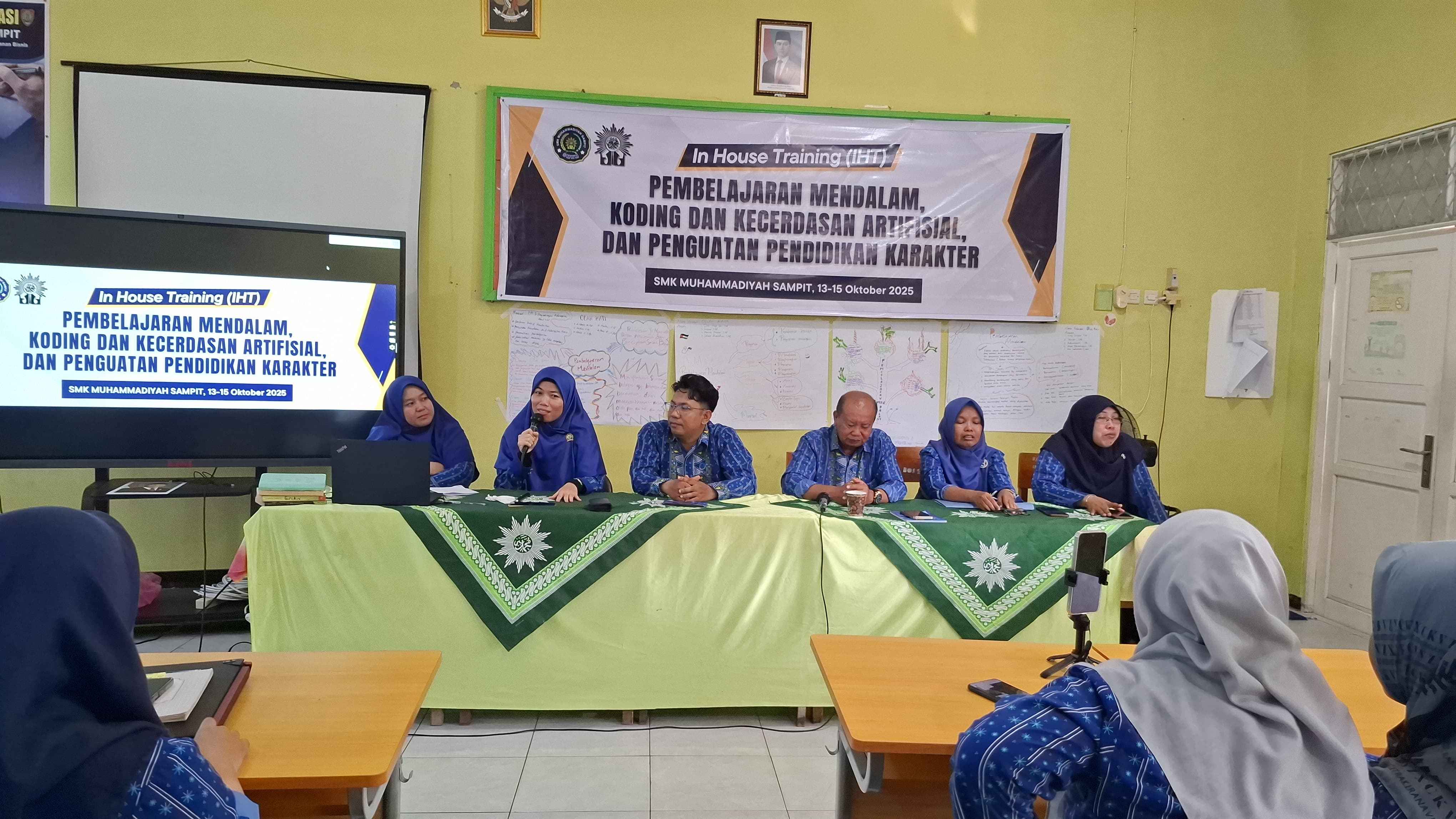 Sampit, — Suasana haru sekaligus penuh kebanggaan menyelimuti ruag pertemuan SMK Muhammadiyah Sampit pada Rabu sore (15/10/2025). Setelah tiga hari penuh kegiatan intensif, rangkaian In House Training (IHT) bertema “Pembelajaran Mendalam, Koding, Kecerdasan Artifisial, dan Penguatan Pendidikan Karakter” resmi ditutup dengan acara sederhana namun bermakna.